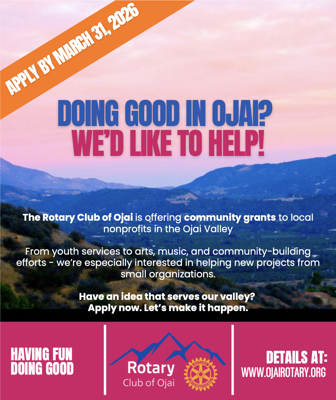 Every year, the Rotary Club of Ojai gives grants to non-profit organizations in our community doing good work.